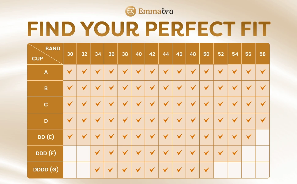 Cup sizes: A, B, C, D, DD (E), DDD (F), DDDD (G)